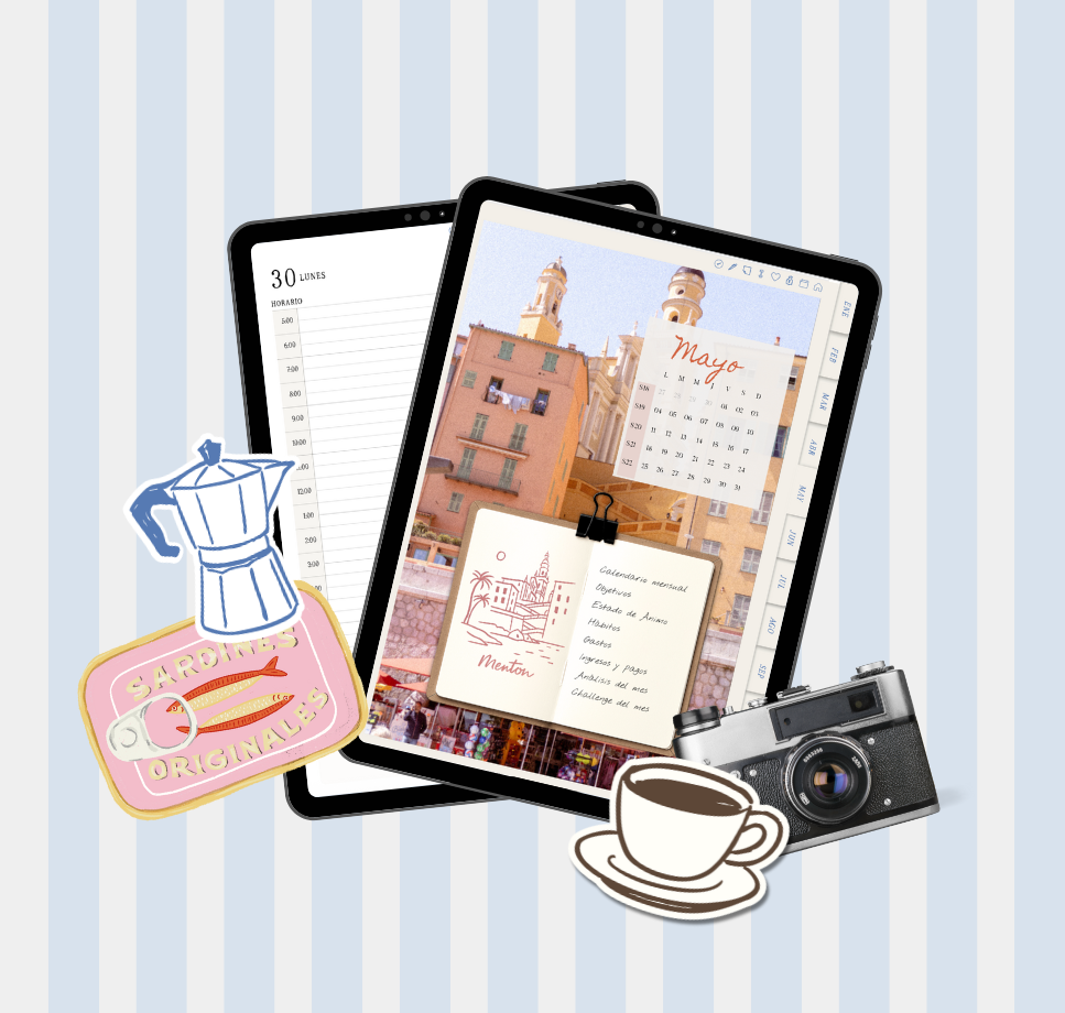 This planner is inspired by Mediterranean life: by small pleasures, by days lived without haste. It was born from the need to slow down, to remember that not everything that goes unmeasured loses its value, like a leisurely morning, a warm coffee, the sun streaming through the window, and all the beauty of the everyday.