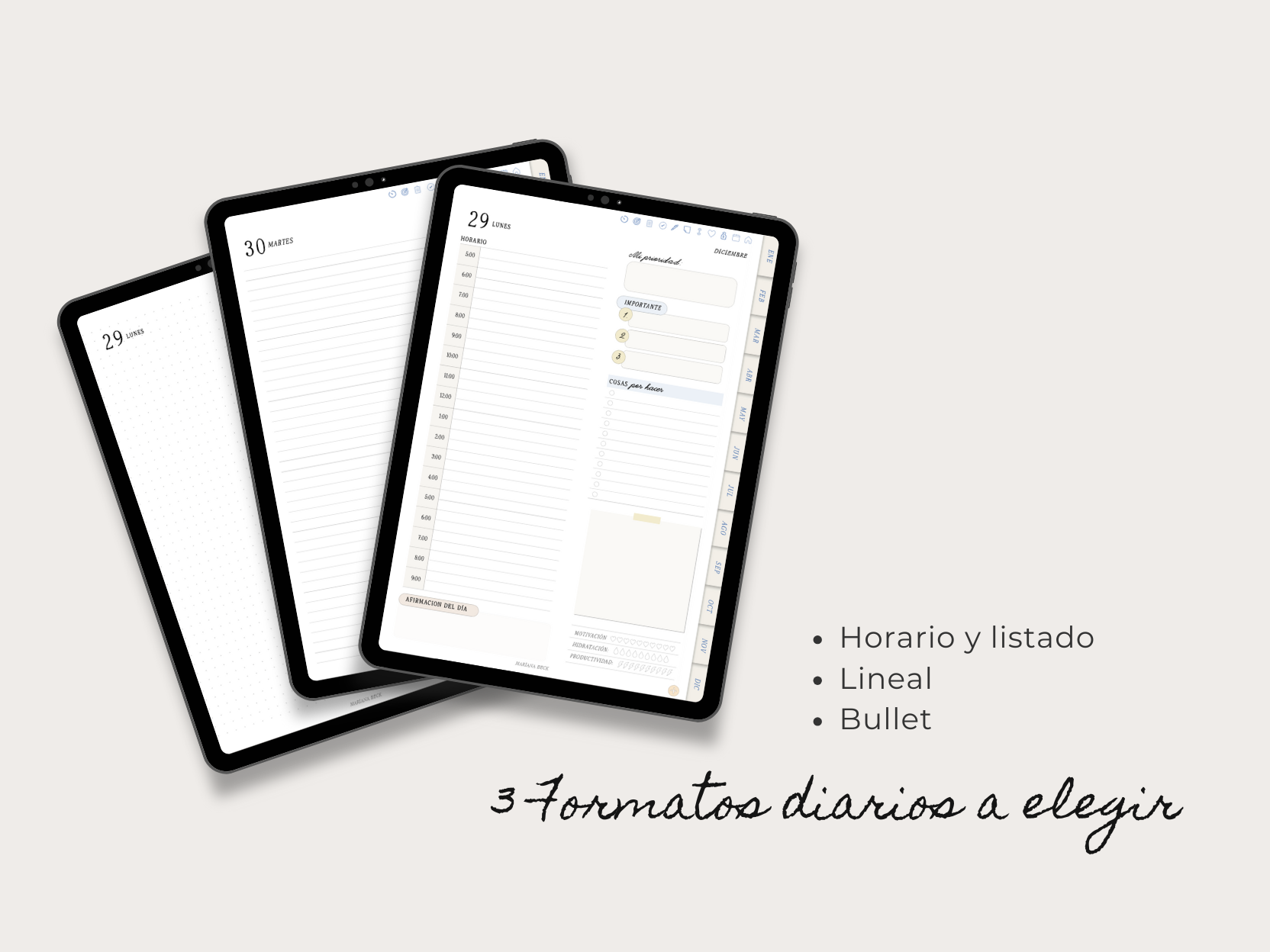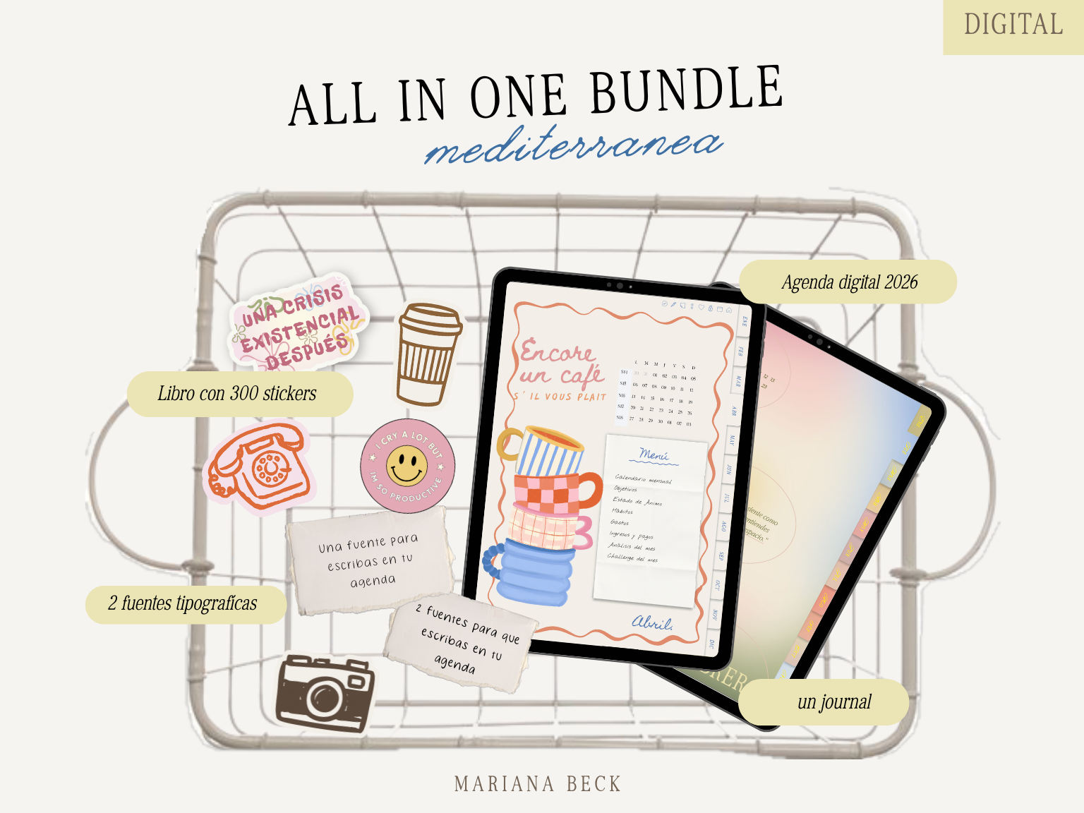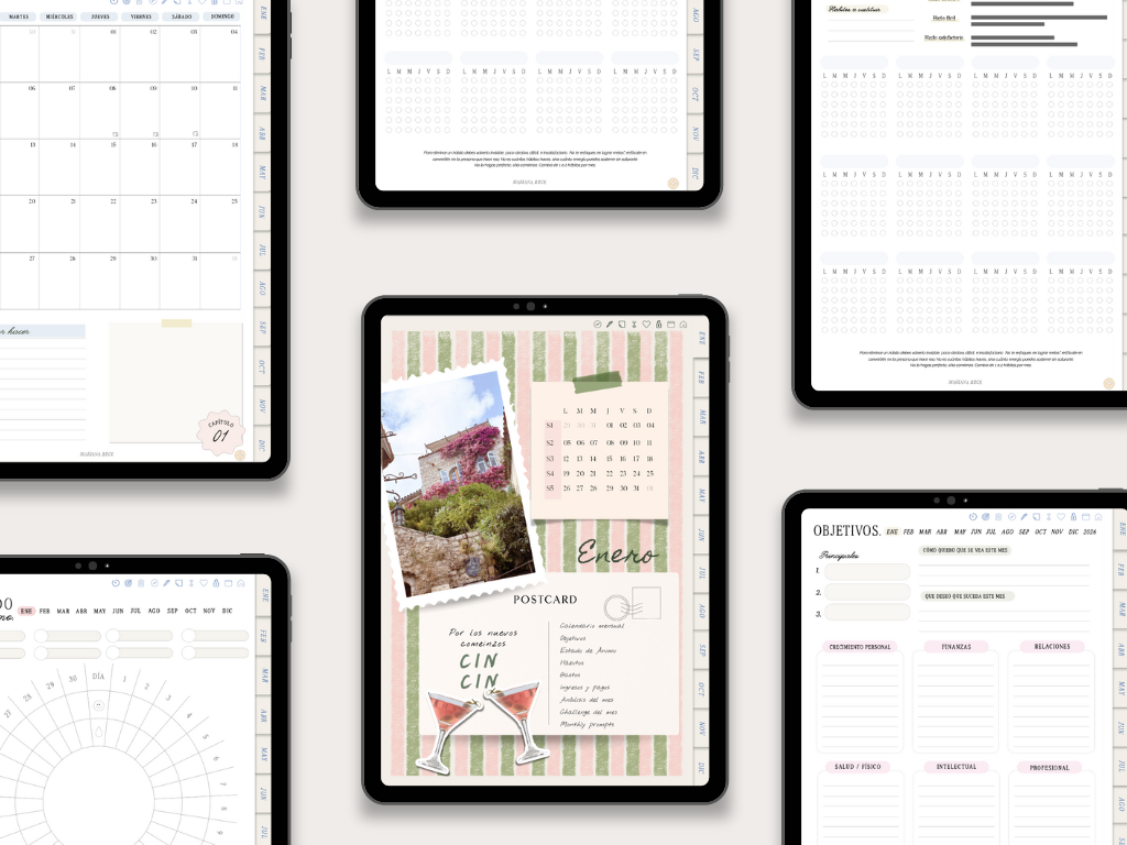 The Mediterranean Planner 2026 is inspired by the tranquility of the Mediterranean: slow days, calm, and many everyday pleasures. It includes monthly, weekly, and daily planning tools, vision boards, habit trackers, financial planners, lists, routines, analytics, and much more, making organization feel like a ritual rather than a chore.
