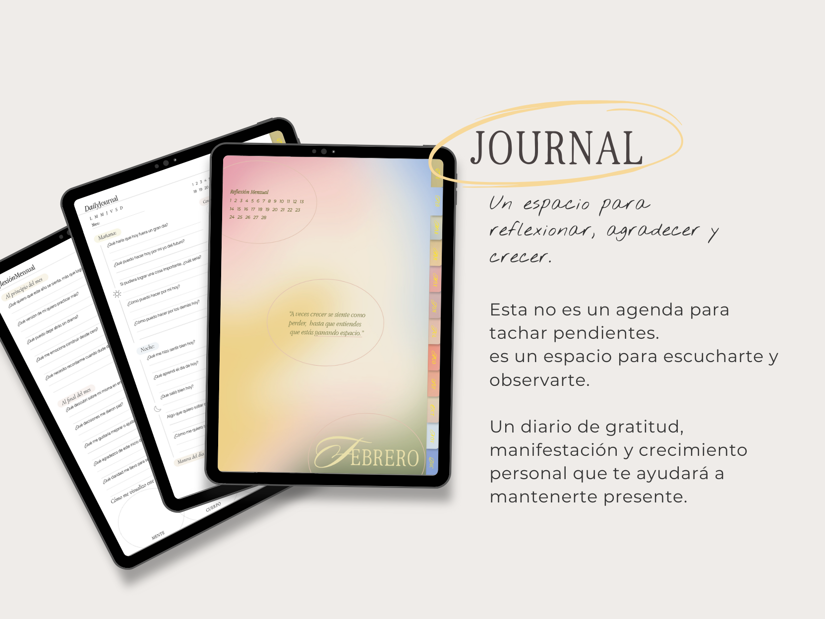 This journal is a space to pause, give thanks, adjust, and continue growing, without rushing and with genuine intention. It's a timeless journal, for you to use whenever you want, any year, at your own pace.