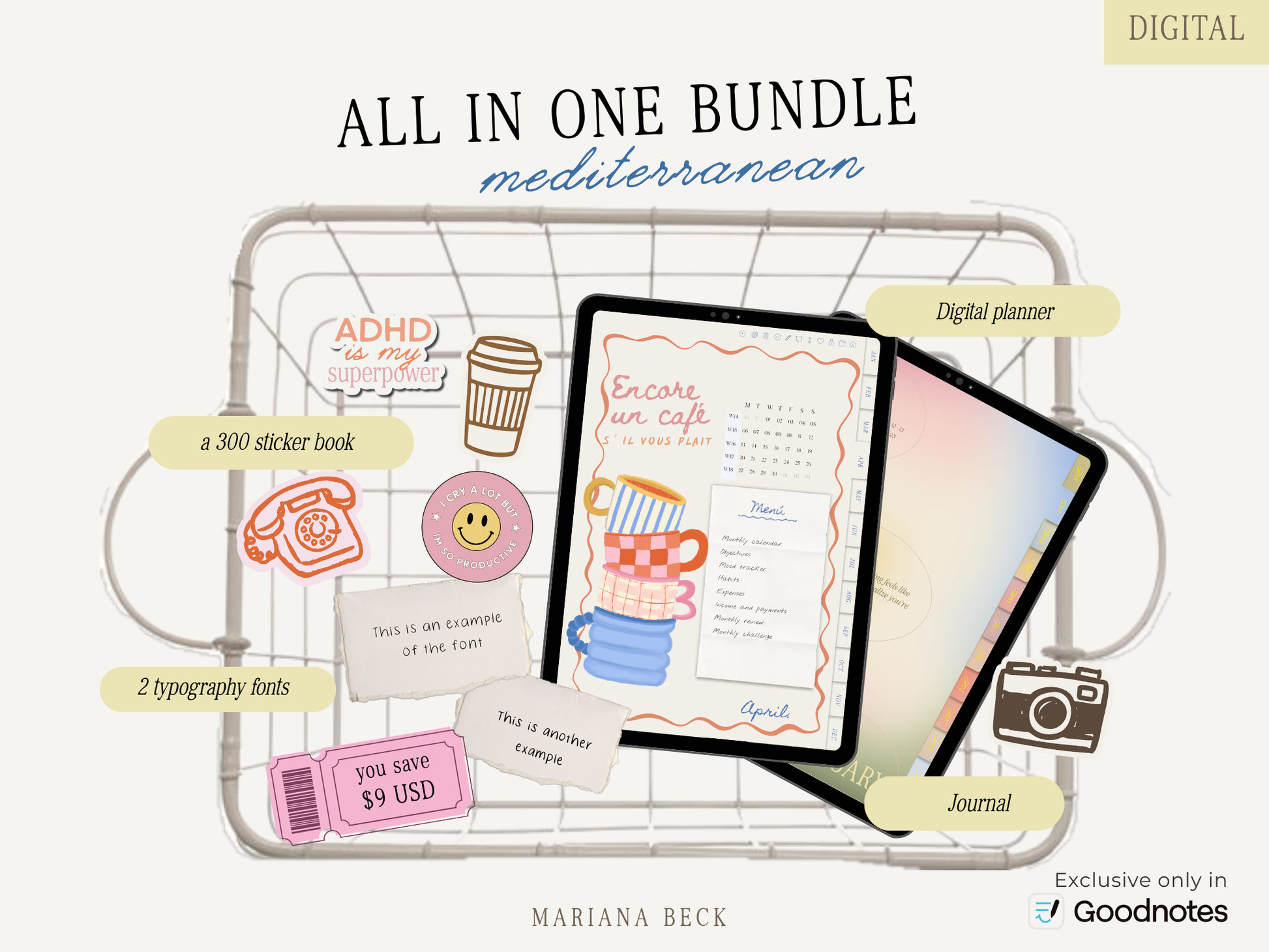 The Mediterranean Planner 2026 is inspired by the tranquility of the Mediterranean: slow days, calm, and many everyday pleasures. It includes monthly, weekly, and daily planning tools, vision boards, habit trackers, financial planners, lists, routines, analytics, and much more, making organization feel like a ritual rather than a chore.